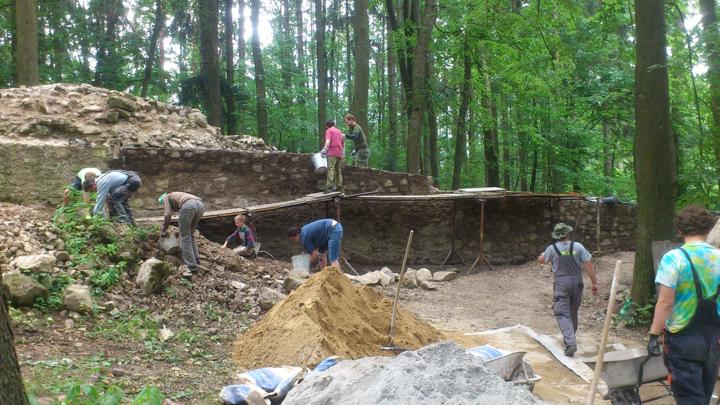Úpravy terénu Dolního hradu, oprava hradních zdí a čištění jejich základů .